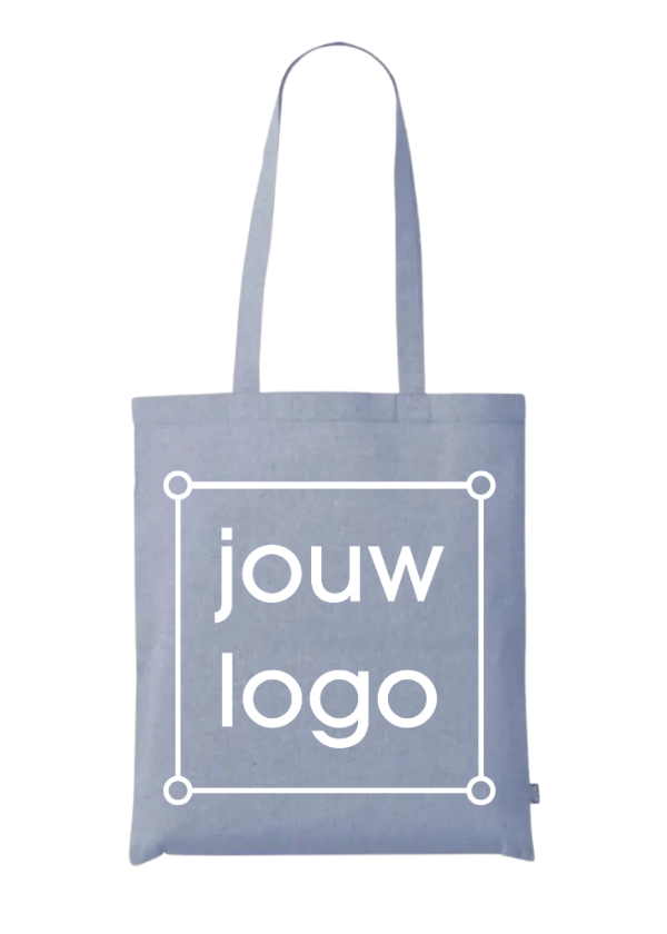 Deze 100% GRS gerecycelde katoenen tote bag is perfect voor diverse toepassingen. Het is een populair artikel voor het promoten van bedrijven en evenementen, en wordt veelvuldig ingezet door allerlei organisaties. Je kunt ze gebruiken als boodschappentas, maar ook als relatiegeschenk. De tassen zijn multifunctioneel en duurzaam, met kruissteken bij de handgrepen voor extra stevigheid en envelopnaden voor een mooiere afwerking. Wij bedrukken onze tassen in onze eigen drukkerij in Nederland, waardoor we snel kunnen schakelen.